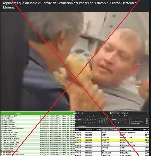 “#SabiasQue Mario “N” de 31 años de edad, quien intentó secuestrar y desviar el día de ayer el vuelo 3041 de Volaris, es militante de #Morena y aspirante a Juez”, señalan publicaciones compartidas cientos de veces en Facebook y X que aseguran que su nombre se encuentra en la lista de aspirantes al cargo “que difundió el Comité de Evaluación del Poder Legislativo y el Padrón Electoral de Morena”.