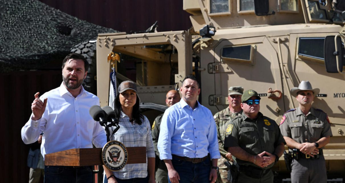Acompañado por el secretario de Defensa, Pete Hegseth, y la directora de Inteligencia Nacional, Tulsi Gabbard, Vance hizo un recorrido en helicóptero por encima de la localidad texana de Eagle Pass —uno de los focos calientes para los cruces fronterizos irregulares—, además de visitar un puesto de la Patrulla Fronteriza.