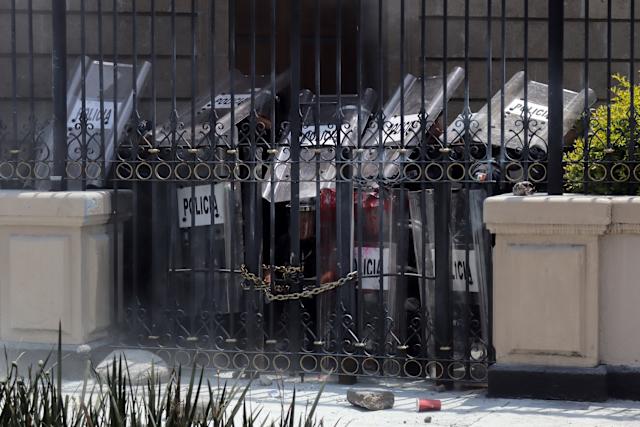Encapuchados en su mayoría, los manifestantes, que acudieron a la Segob para ser recibidos por las autoridades mexicanas, lanzaron bombas caseras, piedras y gritaron consignas, además de tratar de derribar las puertas de la dependencia para ingresar a las instalaciones.